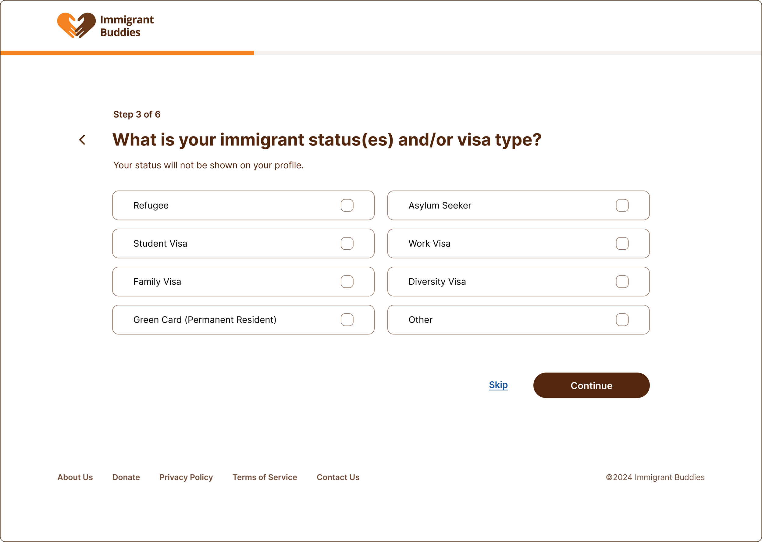 This information helped us focus the main concerns the Immigrant Buddies website would focus on first, before expanding to other areas.