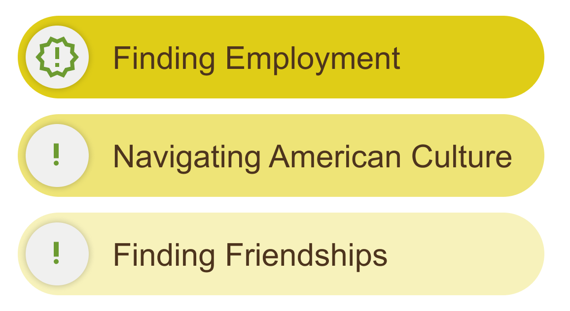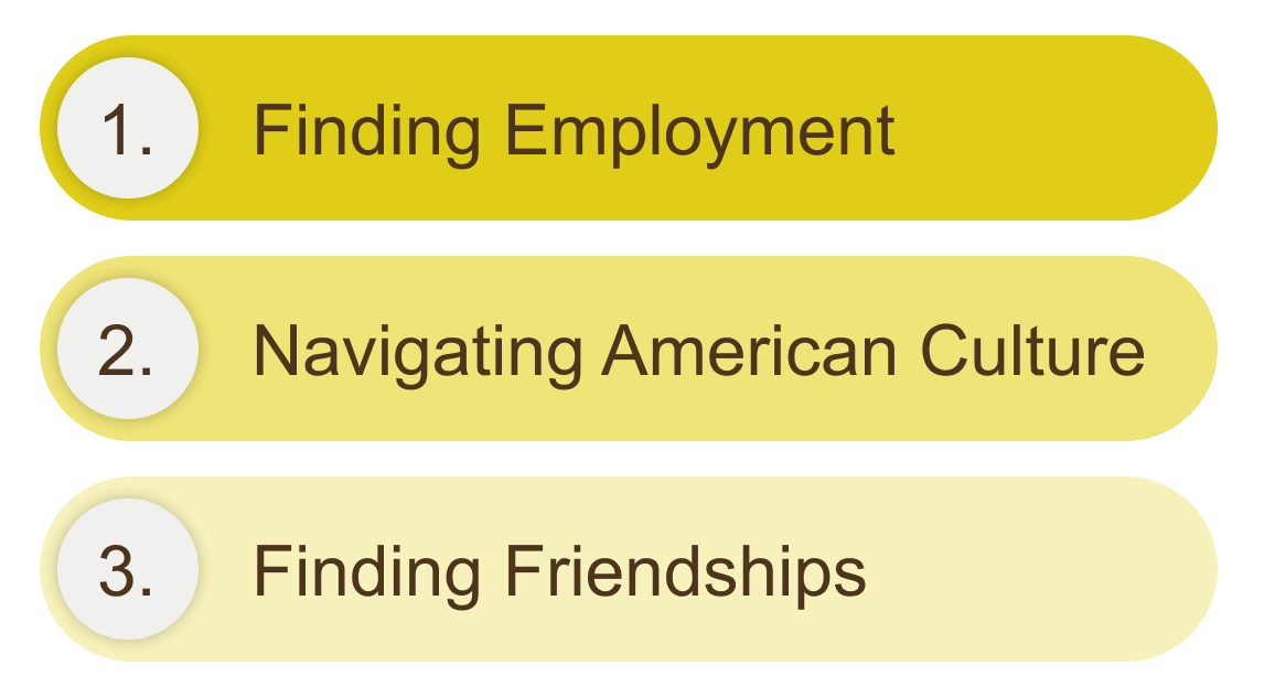 Based on all of the immigrant interviews we found that there are three main concerns immigrants have when first moving to the U.S.
