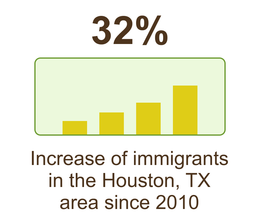 Using Census data and immigrant organizations, I found data on immigration in the U.S., with a focus in Houston, TX immigrants, where our headquarters are located.