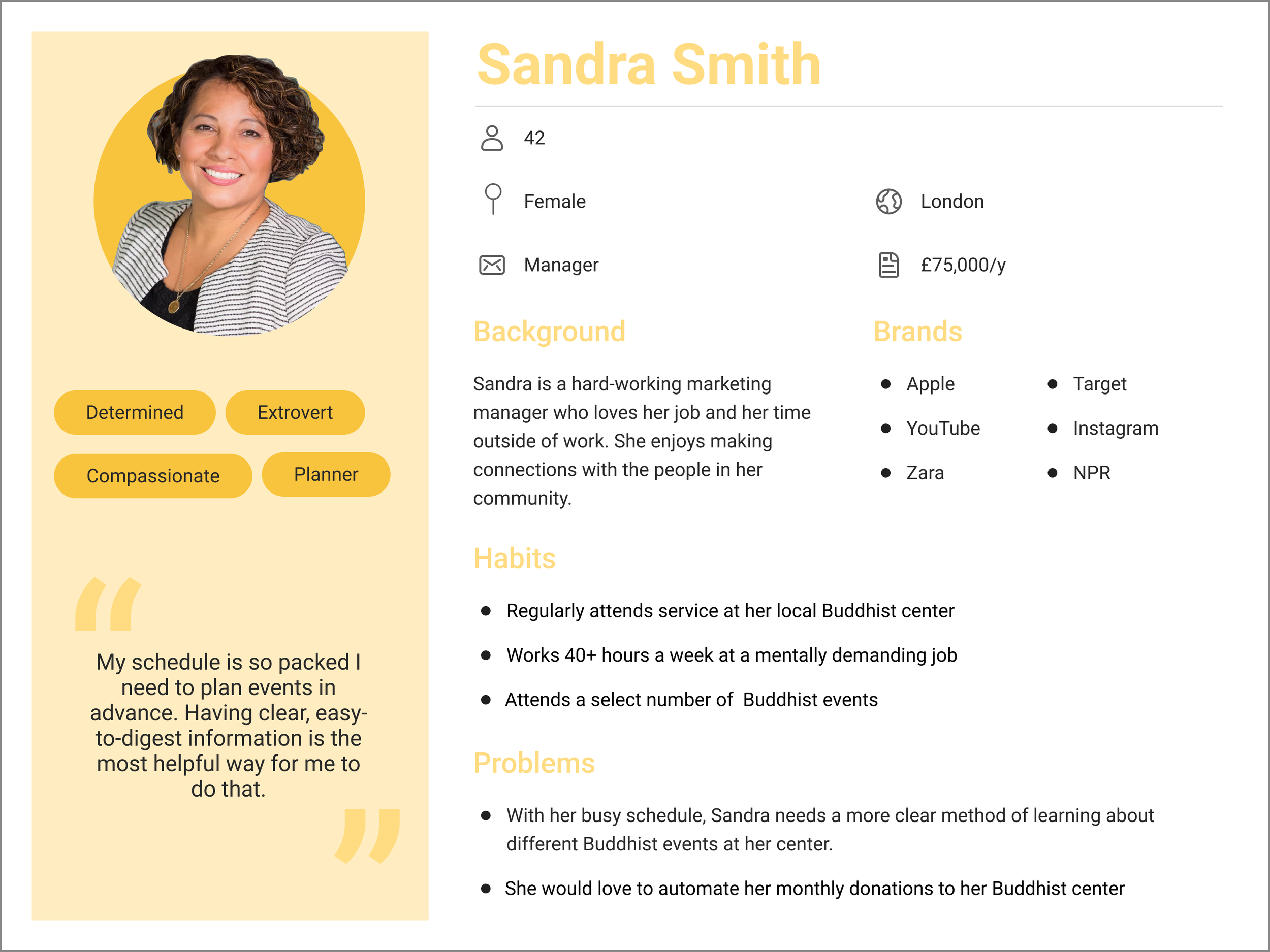 Sandra is an organized, busy professional who likes to plan in advance. Having reminders and automatic withdraws for her monthly donation help her balance her professional and social lives.